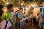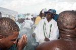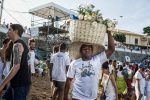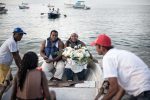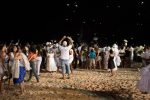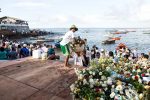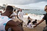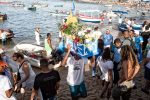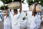Devotees take to the sea various gifts that are considered rejected when they do not sink or when they are returned to the beach.