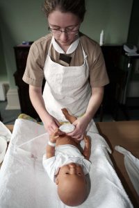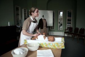 The method of the college is very tough. During the two years the trainees are working in the nursery hospital, in kindergarden and stage beside families, always connected with babies. The new Mary Poppies are a status symbol and are requested from the USA, Russian and Emigrates and all over Europe.